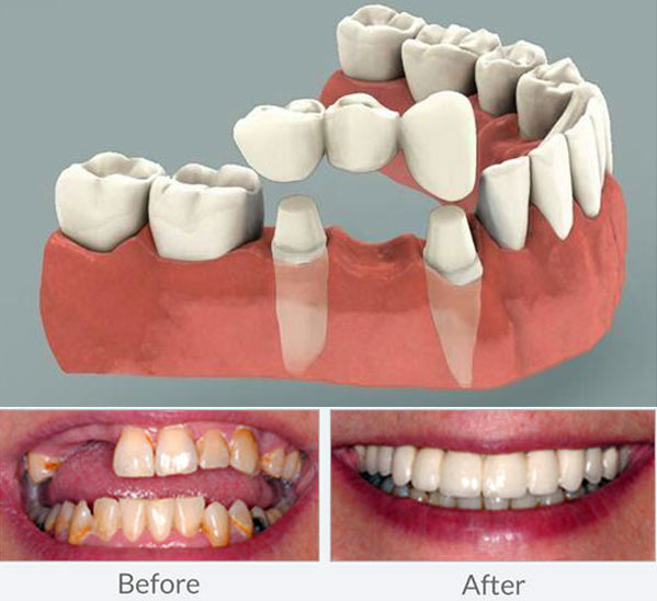 We fabricate crowns which totally match natural teeth in shape, size and color.